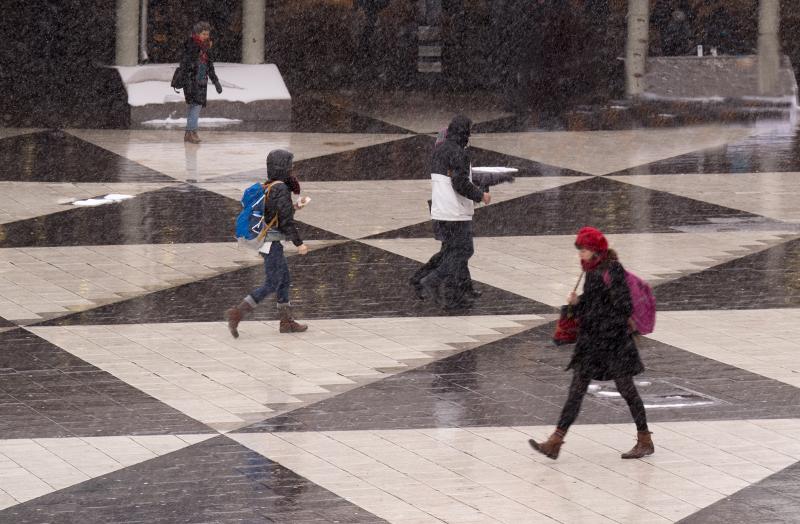 Hurrying across the square