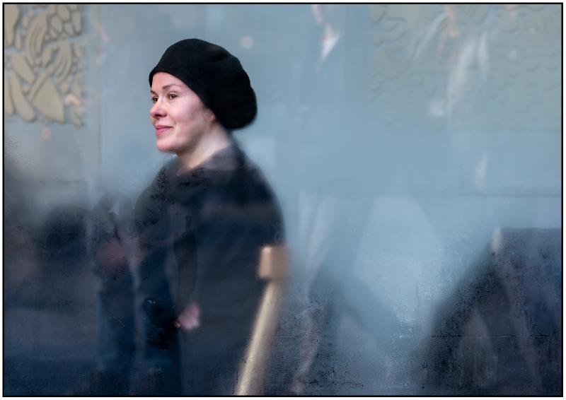 Lady In Black Behind Glass
