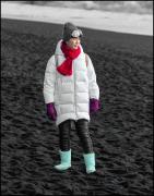 Red Scarf On Black Sand Beach